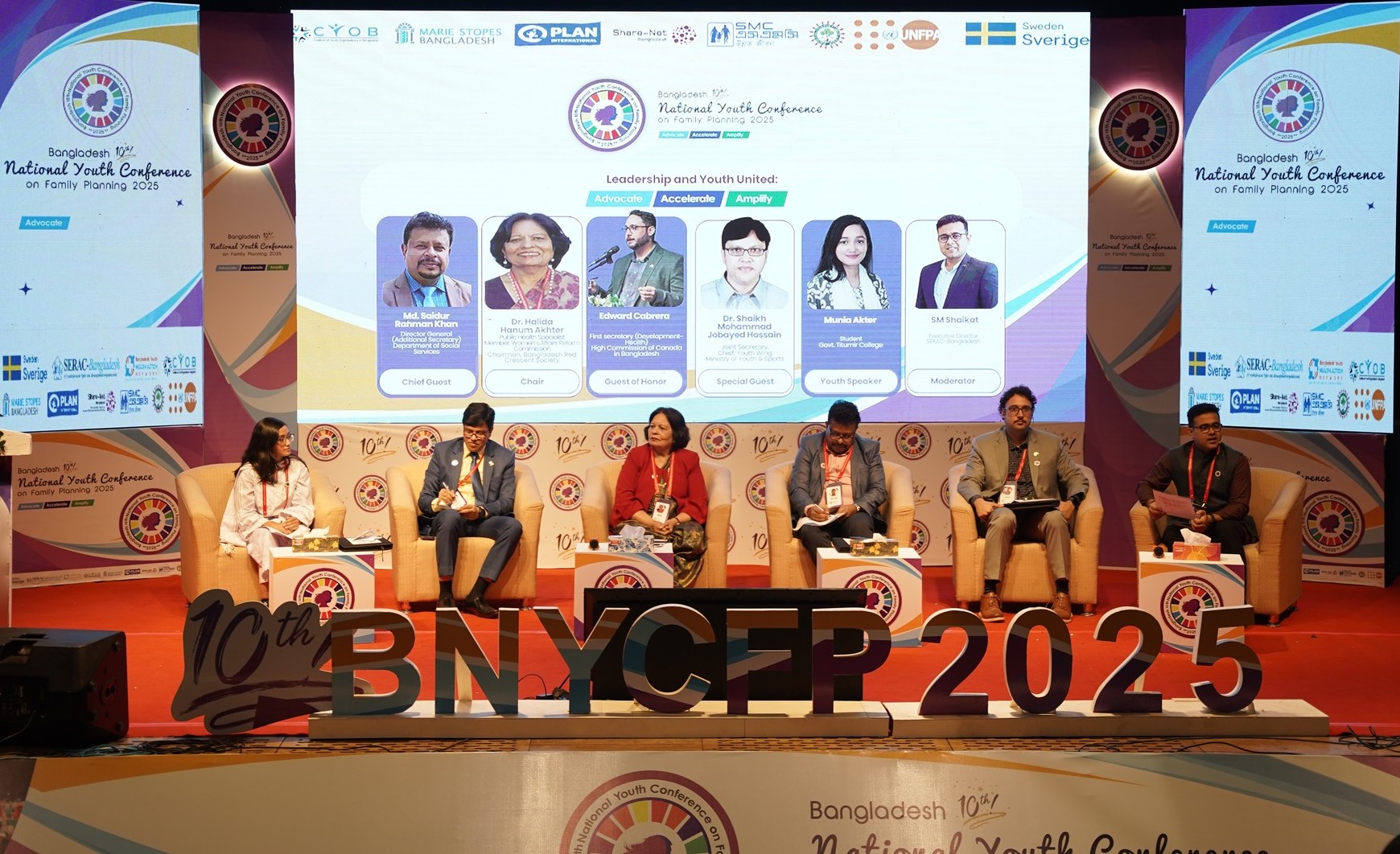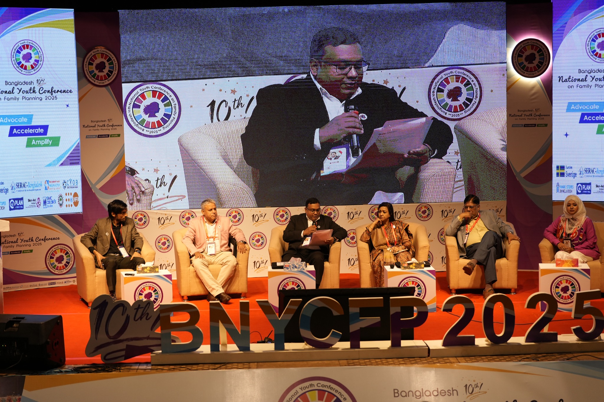 Building on the momentum of nine successful editions since 2016, the conference hosted by SERAC-Bangladesh in collaboration with SIDA, UNFPA Bangladesh, Directorate General of Family Planning, Bangladesh Youth Health Action Network (BYHAN), Coalition of Youth Organizations in Bangladesh (CYOB), Marie Stopes Bangladesh, Plan International Bangladesh, Social Marketing Company, Nutriteens Network, and a broad alliance of partners- stood as a landmark moment for youth-centered health and development in Bangladesh. Under the powerful theme “Advocate. Accelerate. Amplify.”, the 10th BNYCFP reaffirmed one truth: meaningful youth leadership is not optional, it is essential.