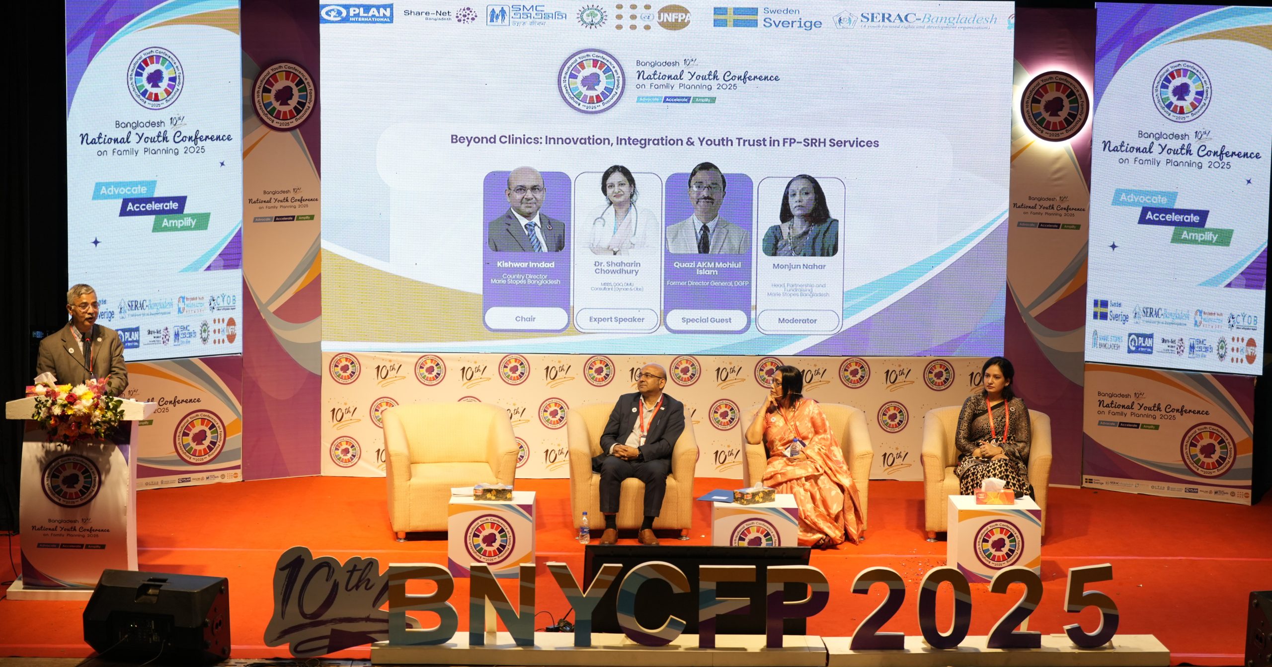 Innovation and trust were central to the third plenary, “Beyond Clinics: Innovation, Integration & Youth Trust in FP–SRH Services.” This session explored how family planning and SRHR services can move beyond traditional clinical settings to better reach adolescents and young people. Experts and youth advocates discussed rights-based, integrated, and youth-friendly approaches that build trust, improve quality of care, and ensure young people are active partners in health systems rather than passive service recipients. The honorable speaker emphasized the importance of involving young people in family planning, ensuring their rights to essential health services, and building trust through innovative and integrated FP–SRH approaches. Bringing together experts and youth advocates, the dialogue focused on identifying practical solutions to expand access and improve the quality of care for all.