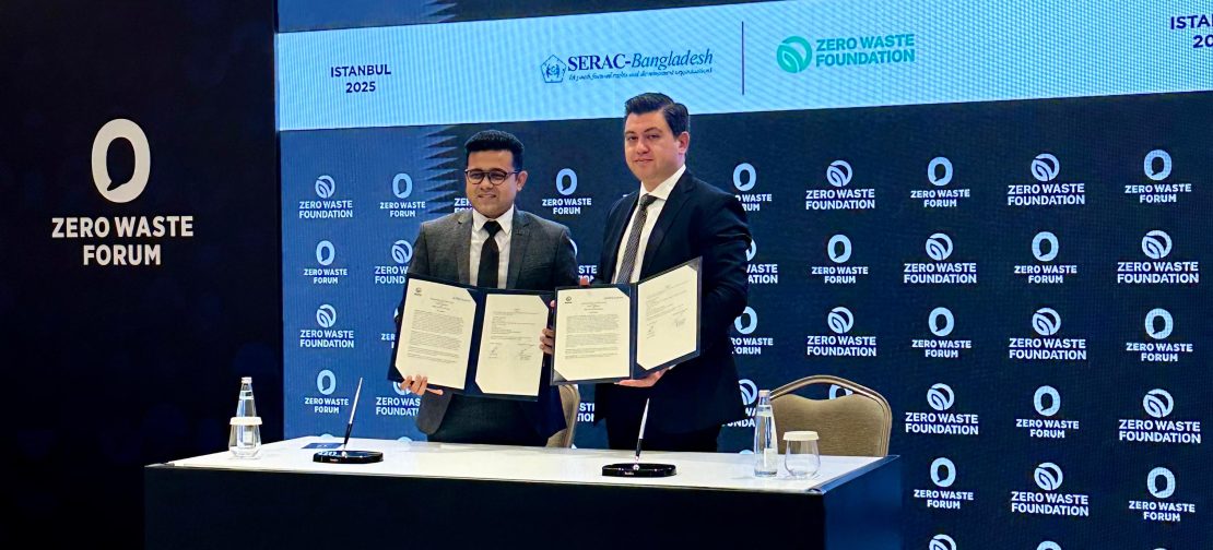 The MoU was signed by Mustafa Erdağı, General Manager of the Zero Waste Foundation, and SM Shaikat, Executive Director of SERAC-Bangladesh, on the sidelines of the Zero Waste Forum 2025 in Istanbul, an event that convened global changemakers, policymakers, and innovators to accelerate action on circular economies and sustainable living.