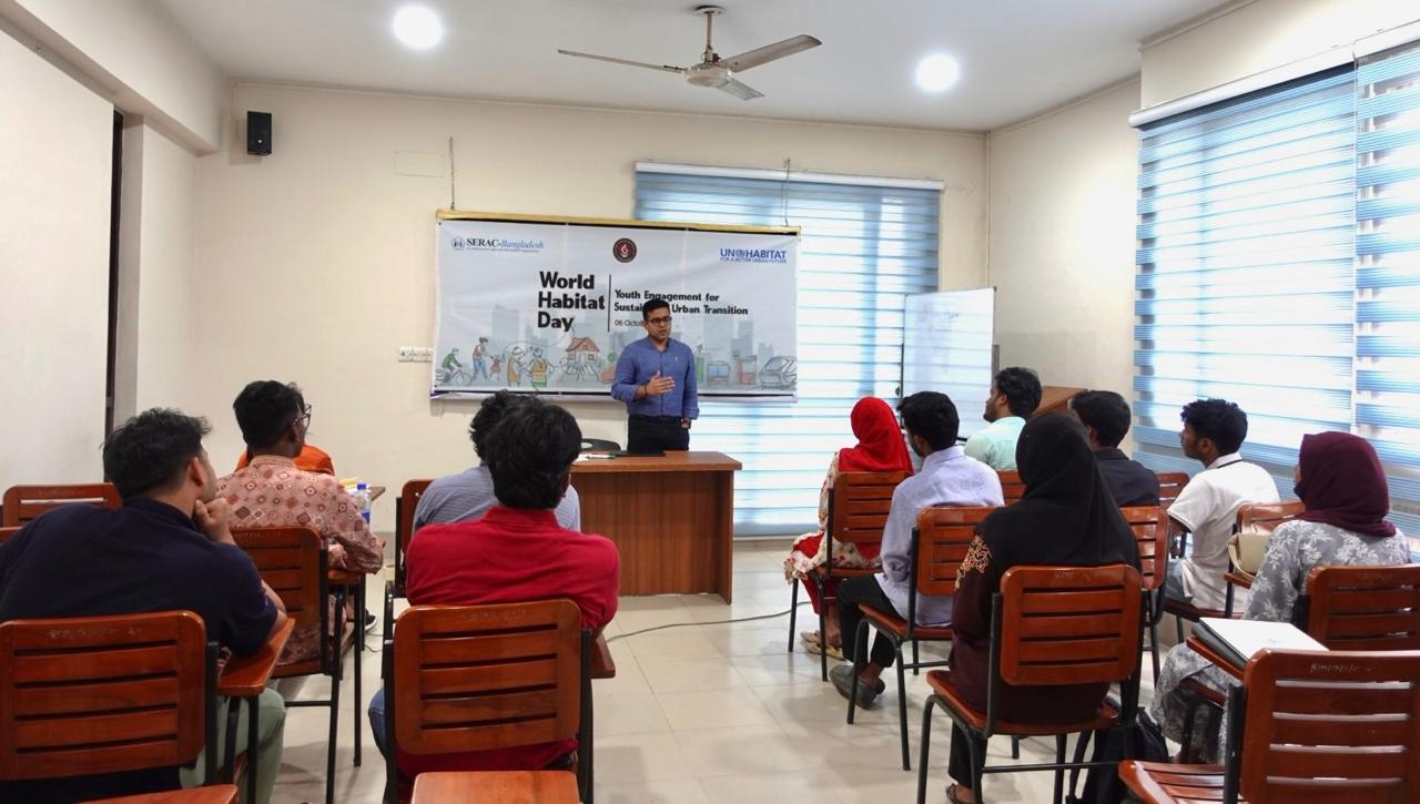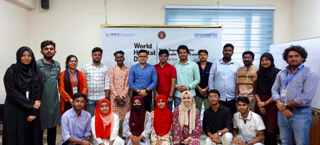 Today, on 6 October 2025, SERAC-Bangladesh observed a special event in Dhaka to mark World Habitat Day. The program was themed “Youth Engagement for Sustainable Urban Transition” in collaboration with UN-Habitat and Bangladesh Urban Youth Council Network through the SHIFT Project.