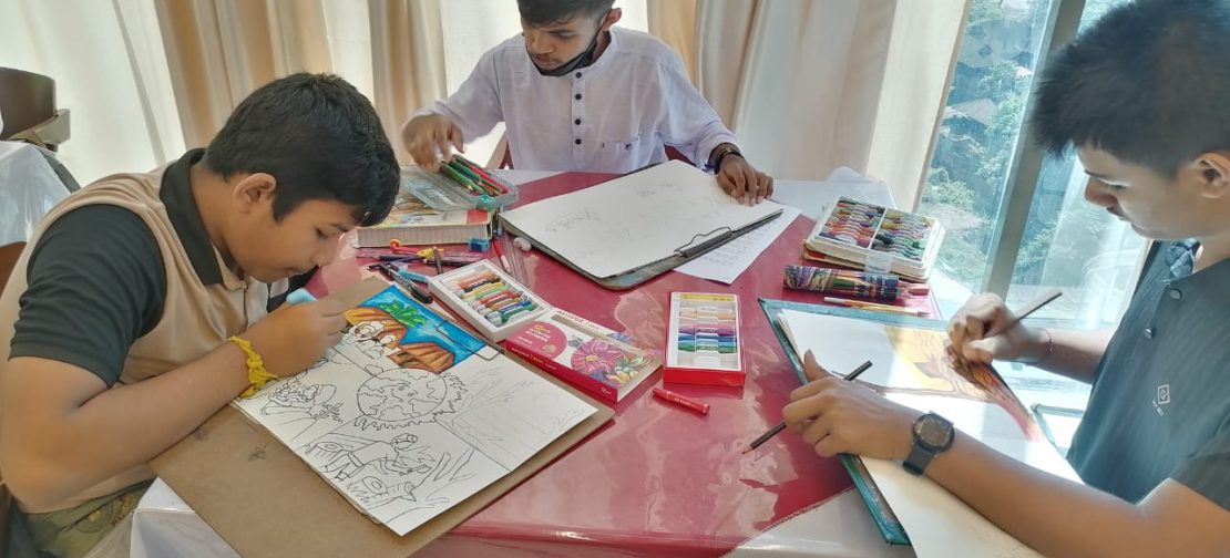 The event brought together 30 young participants — 15 from schools and 15 from colleges — to creatively illustrate how climate change affects health, rights, and community resilience.